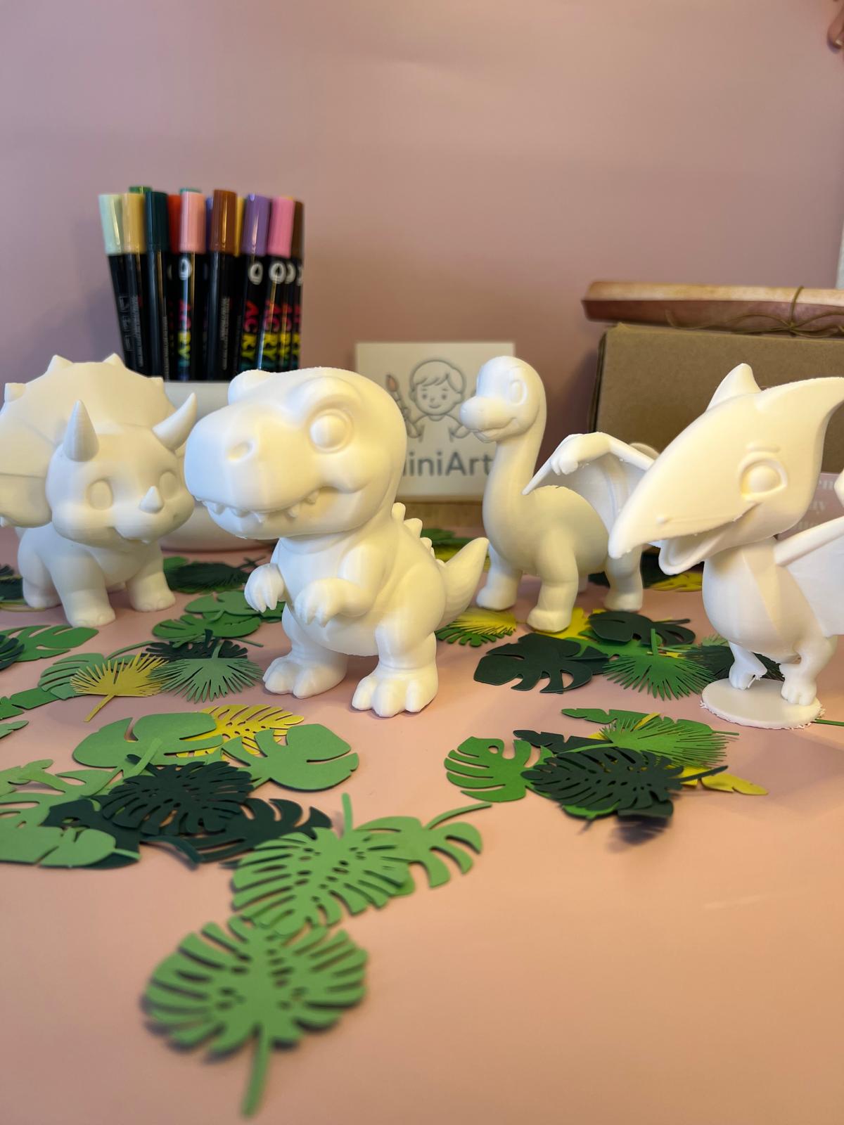 Nuestra colección está diseñada para que los más curiosos y creativos disfruten al máximo. Incluye todos los rotuladores acrílicos necesarios para pintar las figuras y un pergamino especial con la historia de los personajes, que combina datos históricos y científicos reales sobre los dinosaurios con una historia fantástica pensada para los peques.